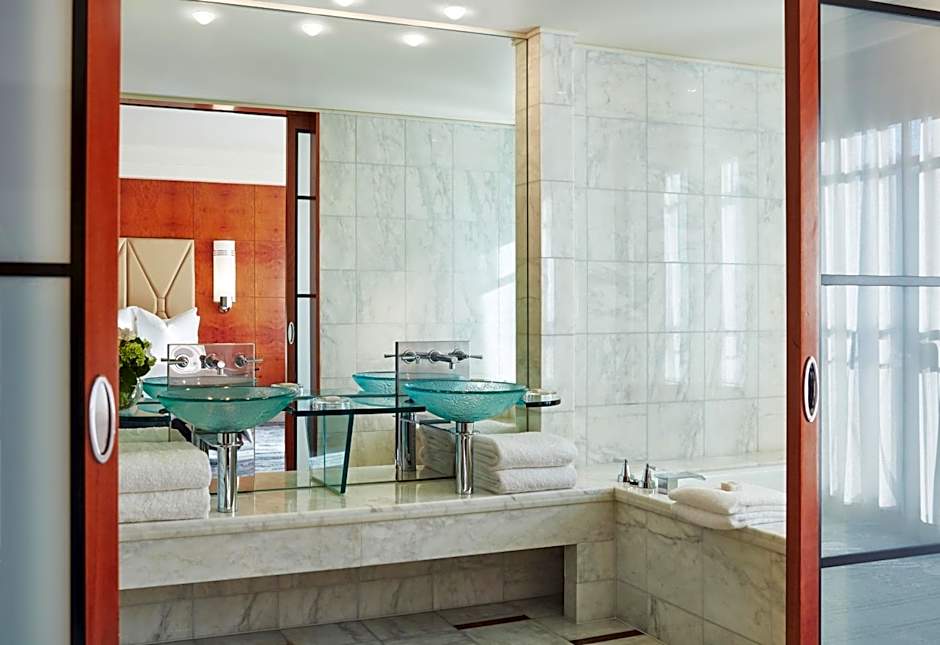 Enter through elegant double doors to the Ambassador Suite, featuring an expansive living room, formal dining for six and study corner as well as an private bathroom with double vanity. Ambassador Suites overlook Melbourne’s surrounding gardens or historic St. Patrick’s Cathedral or the city skyline. You can relax in front of the gas-operated fireplace and enjoy the flat-screen TV and Bose Bluetooth speaker. Also featured in the suite is a Nespresso coffee machine, in-room safe and walk-in wardrobe.